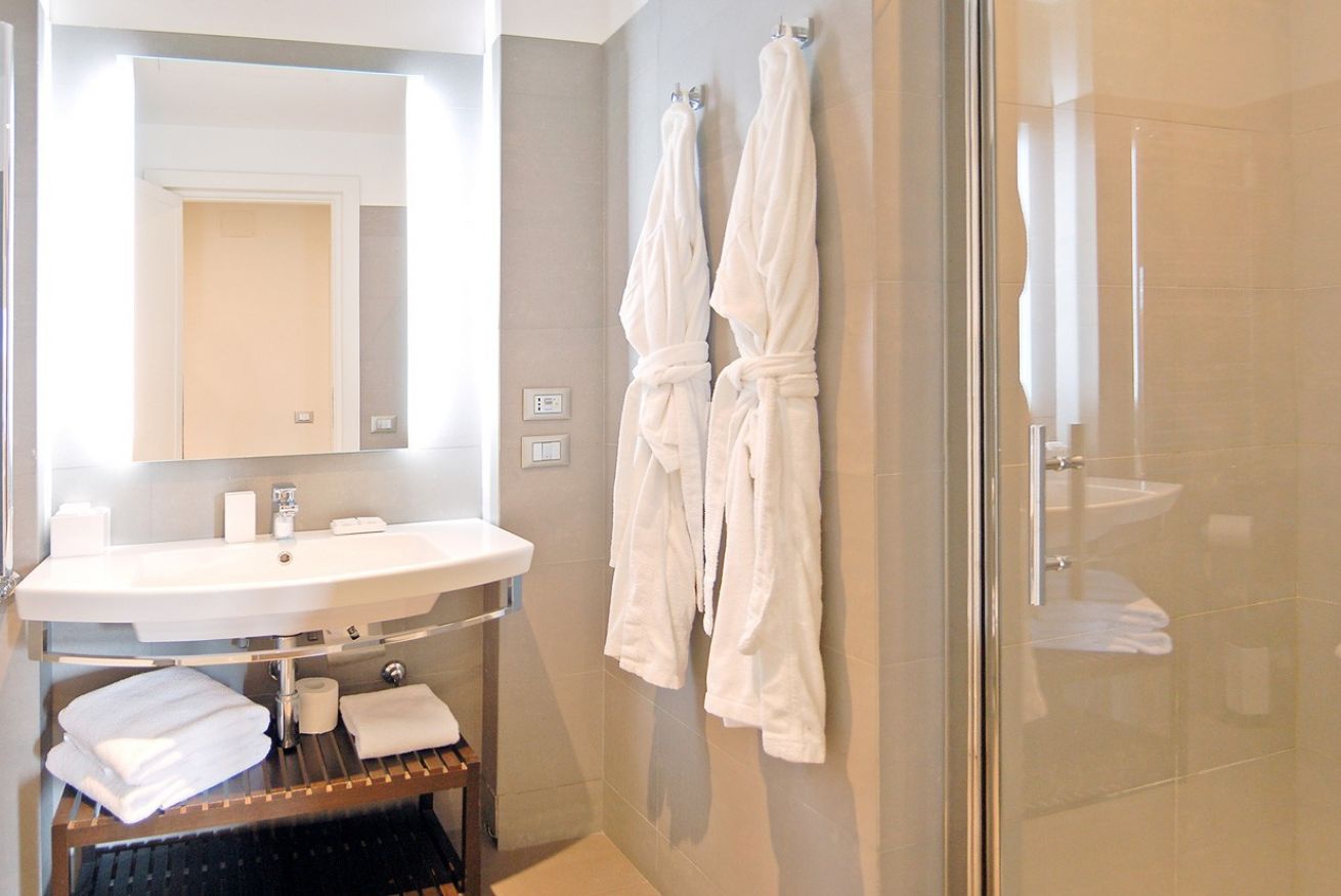Si compone di ampio soggiorno con area salotto, zona pranzo e piccolo angolo cottura completamente attrezzato, 2 comode camere da letto matrimoniali, cabina armadio, 2 bagni con doccia. L’appartamento è dotato di tutti i comfort per soddisfare le esigenza dei nostri ospiti: accesso elettronico di sicurezza con carta codificata, aria condizionata con controllo individuale, cassetta di sicurezza, asciugacapelli, Wi-Fi gratuito e televisore LCD con canali satellitare. Inoltre sono presenti macchina del caffè espresso e bollitore.